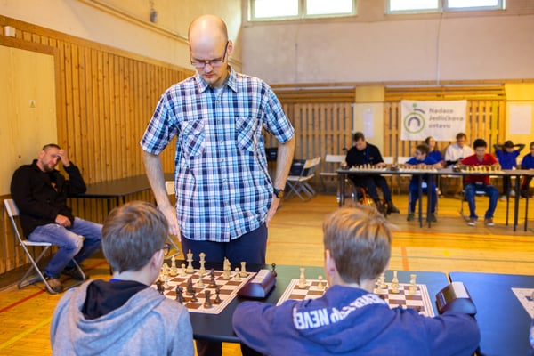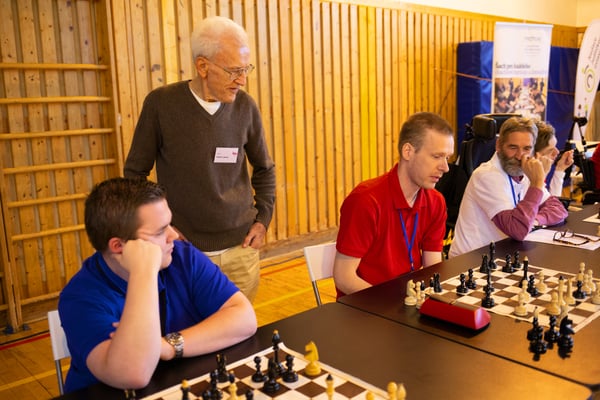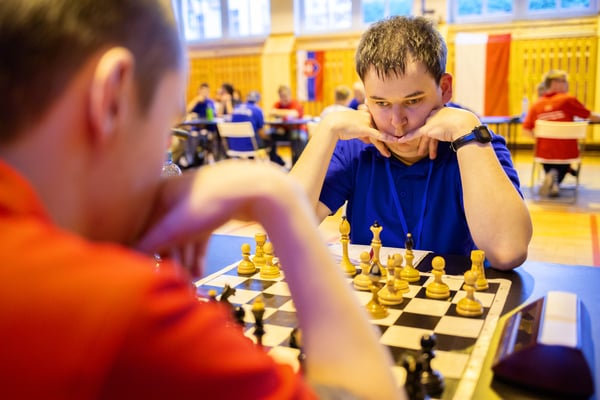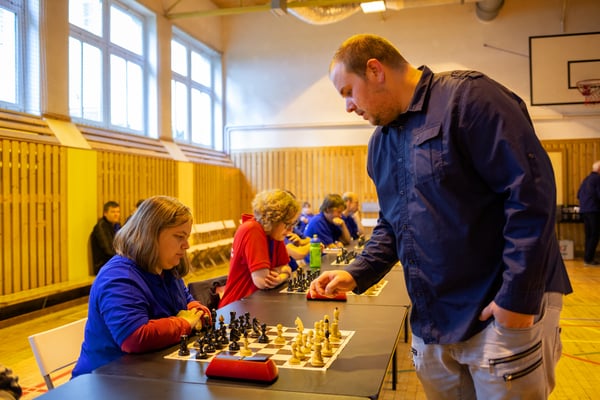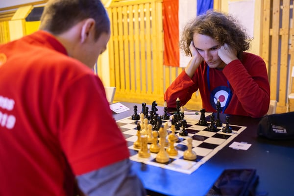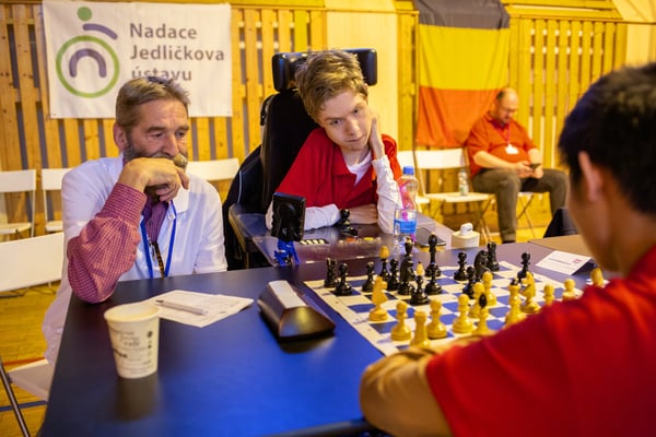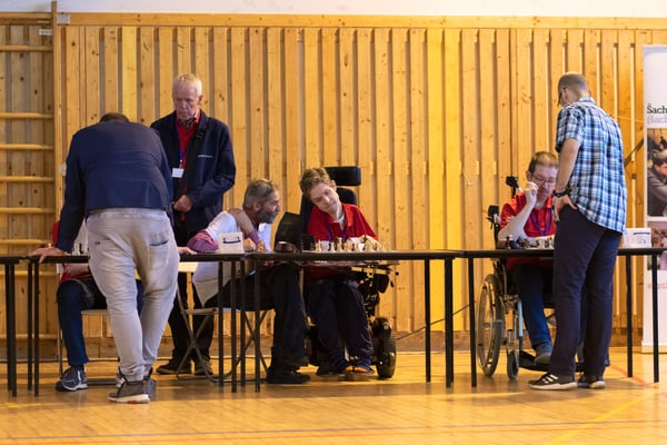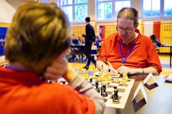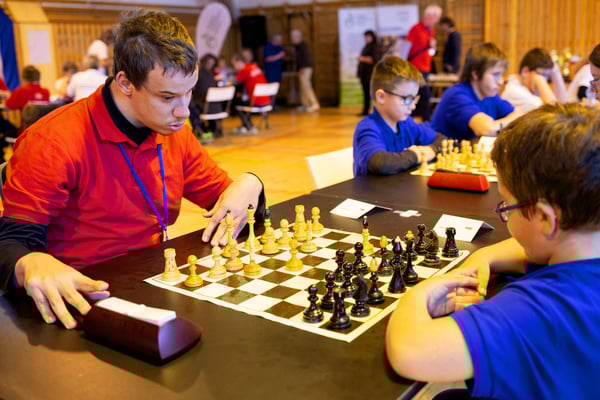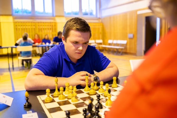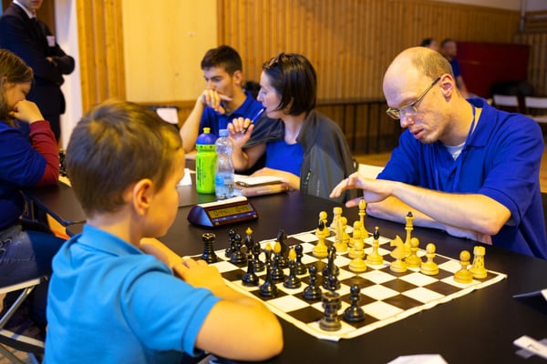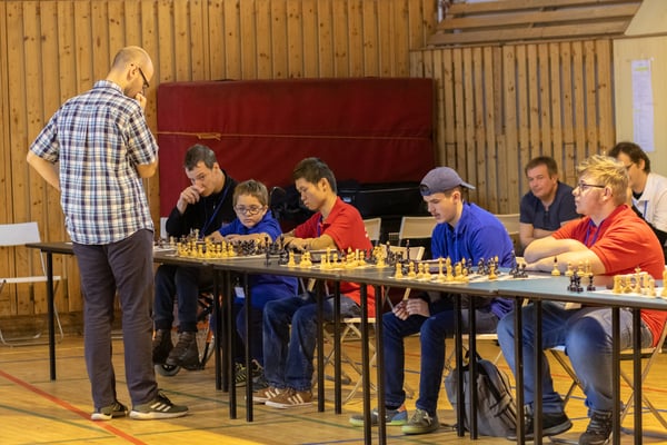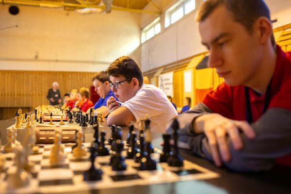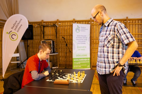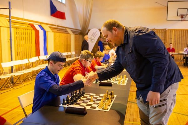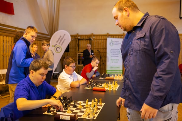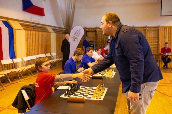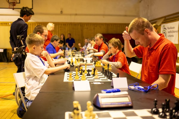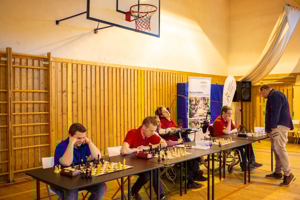 Na een voortreffelijk ontbijt werden de deelnemers uitgenodigd voor een simultaan wedstrijd tegen twee hele goede schakers uit Tsjechië, waarvan een International Master. Verschillende van onze deelnemers hebben goed gepresteerd, ze hebben op tijd gewonnen. Een van onze schakers (Peter Keune) wist binnen de reguliere tijd een remise af te dwingen. Hij kreeg hier veel waardering voor van zijn tegenstander Josef Havenka, International Master (ELO 2350).