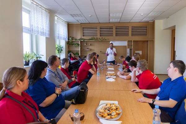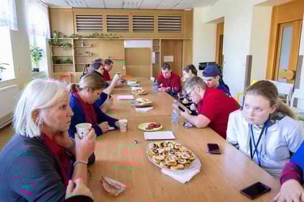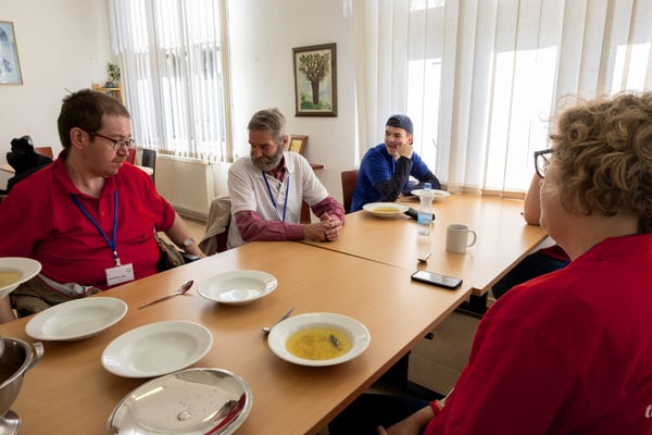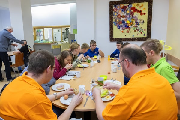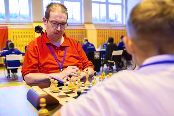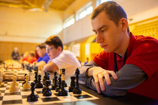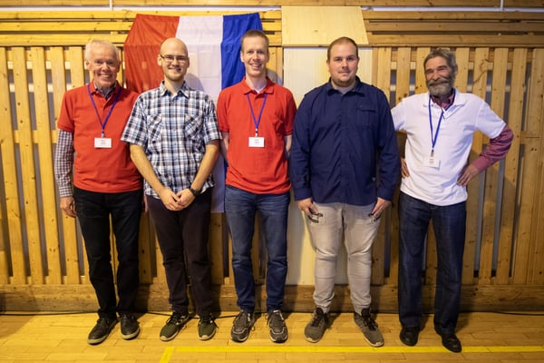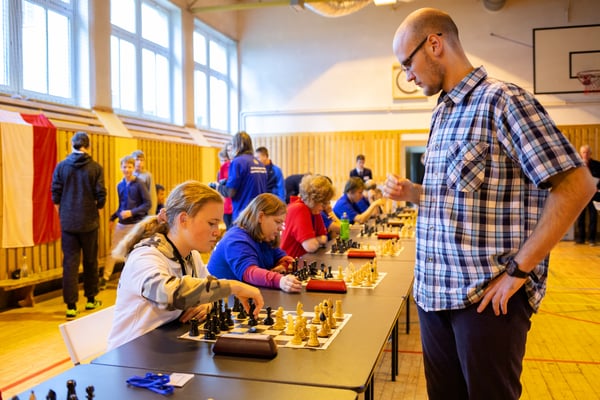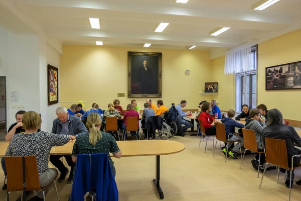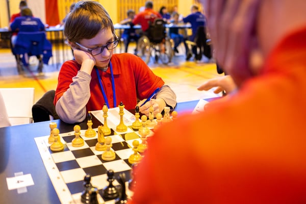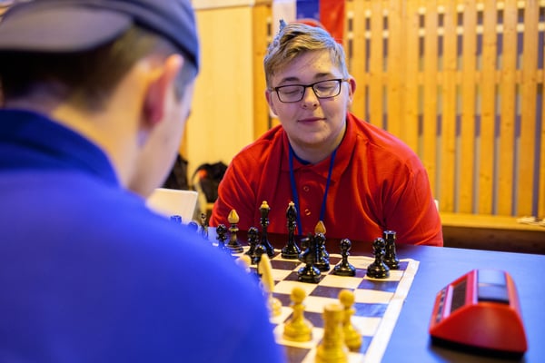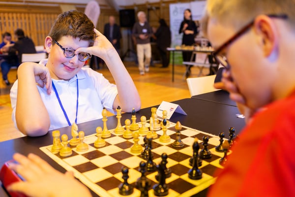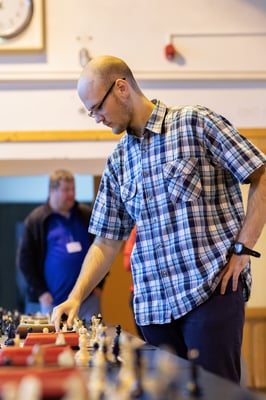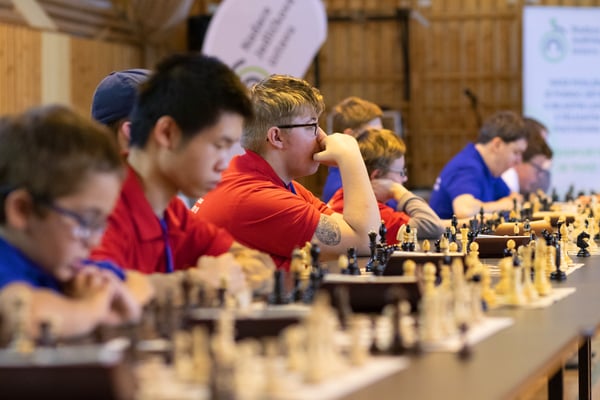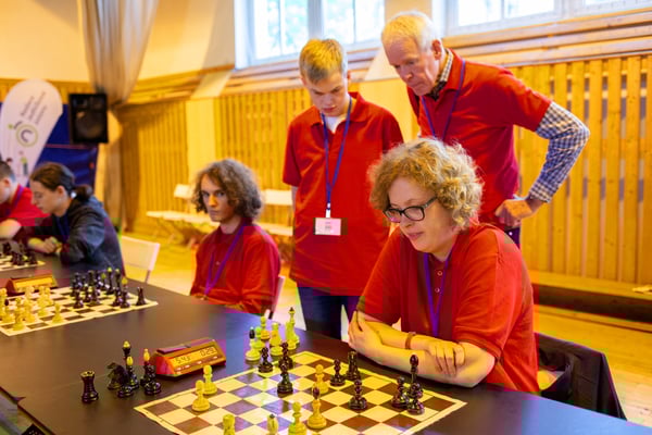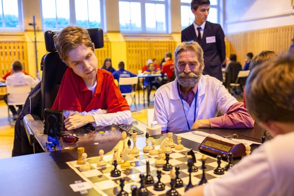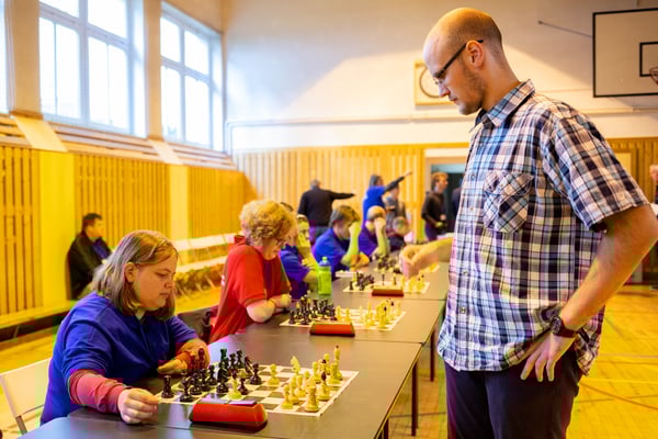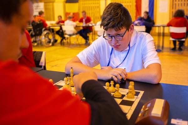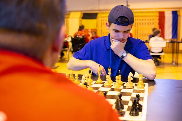 Na een voortreffelijk ontbijt werden de deelnemers uitgenodigd voor een simultaan wedstrijd tegen twee hele goede schakers uit Tsjechië, waarvan een International Master. Verschillende van onze deelnemers hebben goed gepresteerd, ze hebben op tijd gewonnen. Een van onze schakers (Peter Keune) wist binnen de reguliere tijd een remise af te dwingen. Hij kreeg hier veel waardering voor van zijn tegenstander Josef Havenka, International Master (ELO 2350).