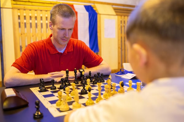 Daarna werd er nog even gezellig bij elkaar gezeten en kwamen de schaakborden natuurlijk weer op tafel.