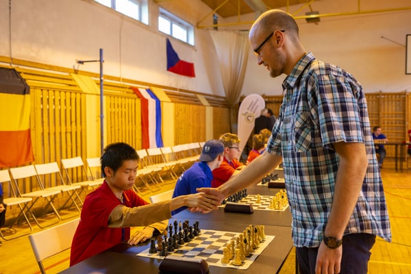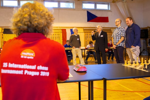 Voor aanvang van de wedstrijden kregen de deelnemers nog enkele tactische tips van schaakleraar Ben van Uden. Daarna vertrokken we naar de zaal voor de officiële opening. Dhr. Ales Chytka, de grondlegger van de schaaktoernooien in Praag, was als speciale gast uitgenodigd. Het Tsjechische volkslied werd gezongen, daarna volgde een theater impressie van het schaakspel. Na enkele toespraken kon de eerste wedstrijd beginnen.